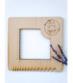 Medidor de tensión para muestras de crochet y punto, con calibrador de ganchillos en la parte inferior.